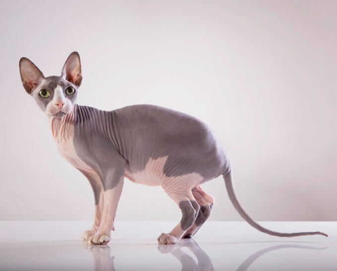 The Sphynx cat is the most iconic and well know of all hairless cats, but there are two other hairless breeds with similar traits and attributes; Donskoy and Peterbald.ᗢ
